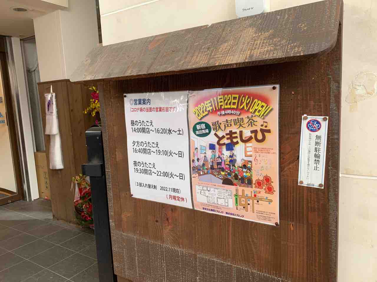 営業時間:昼のうたごえ14:00〜16:20(水曜~土曜)、夕方のうたごえ16:40〜19:10(火曜~日曜)、夜のうたごえ19:30〜22:00 (火曜~日曜)