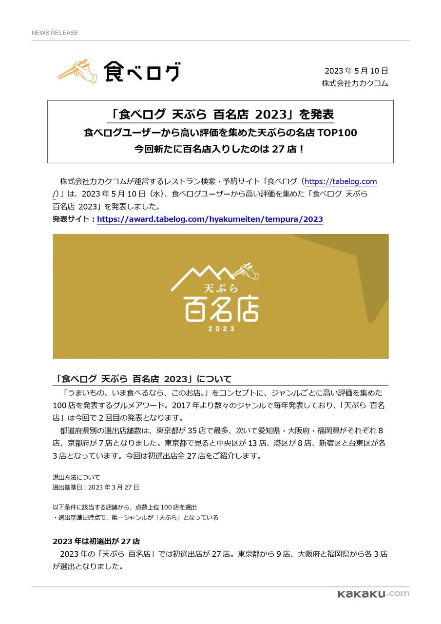 ※NEWS RELEASEは、株式会社カカクコム公式HPよりダウンロードしました。