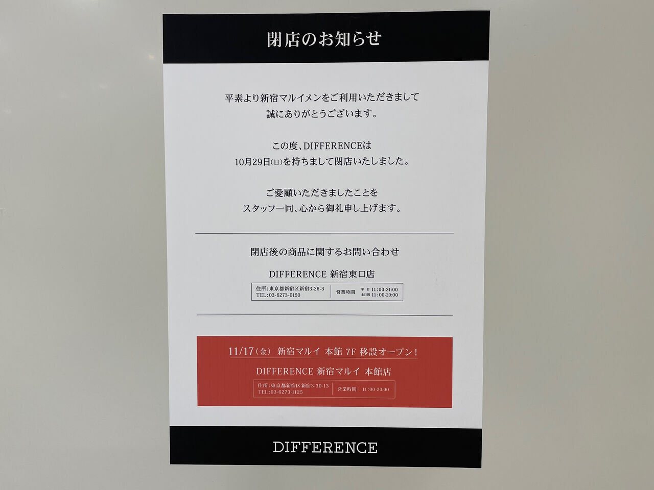 『DIFFERENCE』に貼り紙ある…