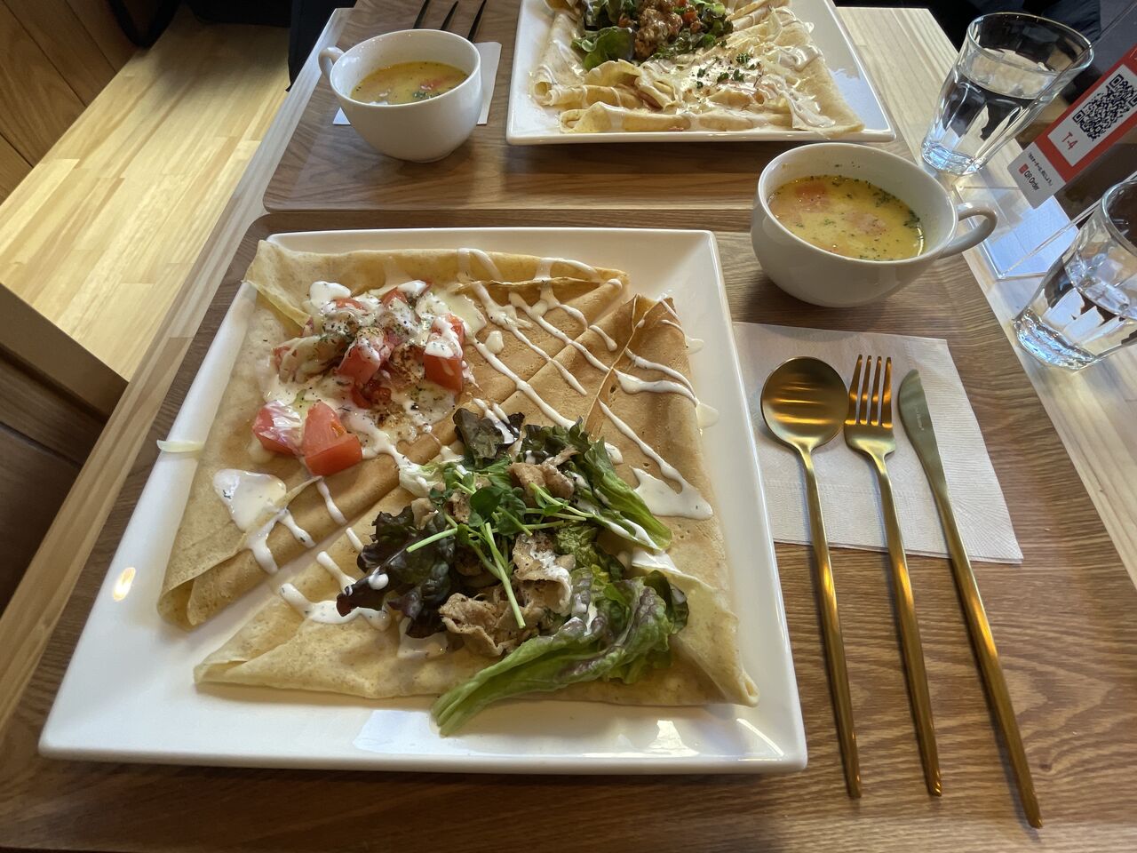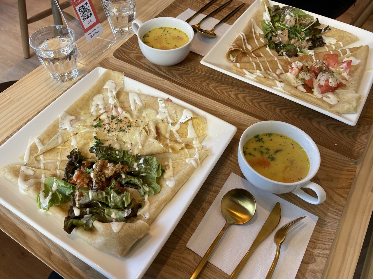 クレープ2種と日替わりスープ。