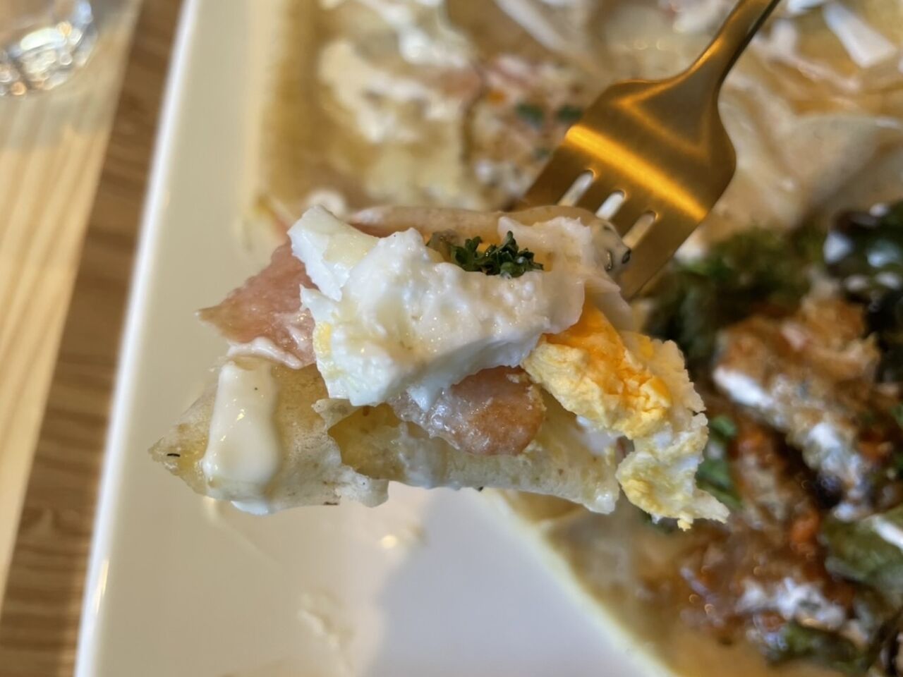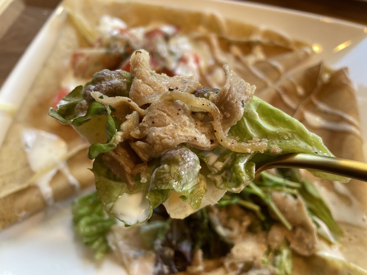 ハムの塩味とクレープの甘みに