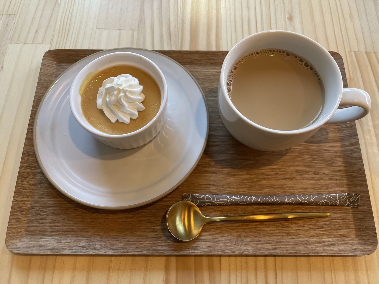キャラメルプリンとカフェオレで。
