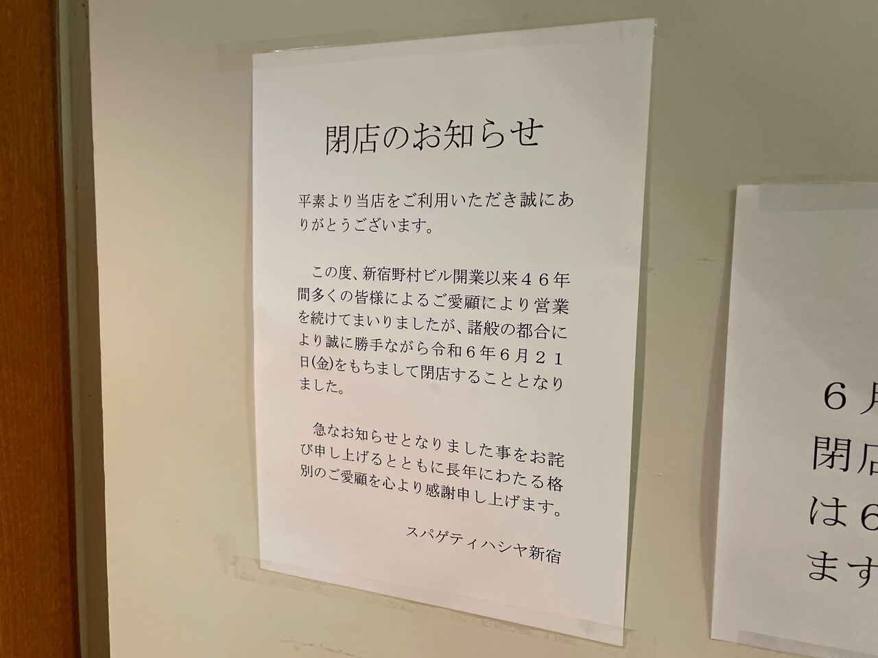 6月21日をもって閉店。
